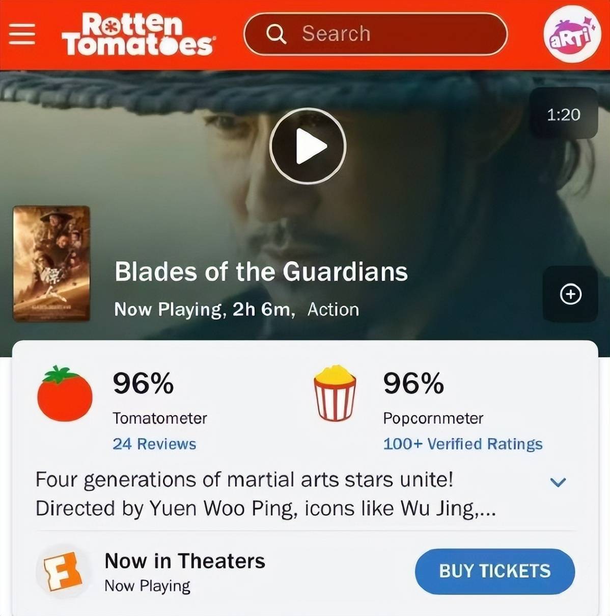 而且走出国门后,该片口碑反响依旧不减,烂番茄新鲜度飙升%,IMDb评分/10,真正意义上让武侠元素被更多人知道了。