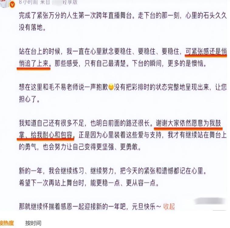 说实话,比她年轻的,很多人头回登春晚,也能把场面撑得住。要是说她真的挺怕那种大舞台,早些时候彩排的时候,难不成就该坦白心里话,干脆就退了,把这个位置让给别人得了?一边把机会揣在手里,一边又说出这样的不由衷的话,感觉特别假,完全不真诚。她的说法,看起来更像是在掩盖自己的缺点,试图让大家原谅她这次的失误。